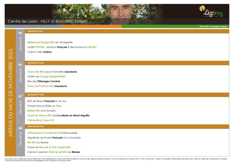Le repas durant les vacances et les mercredis (1/2 journée matin ou journée complète) est obligatoire. Seul les enfants signalés comme allergiques auront la possibilité d’apporter leur repas. Le tarif de la journée sera alors défalqué du coût du repas.