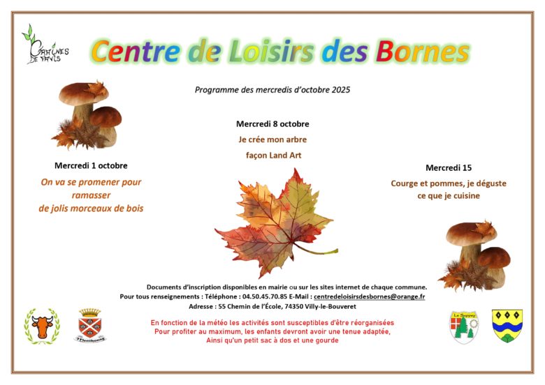 Au delà de cette date, toute demande d’inscription doit s’effectuer uniquement par mail à l’adresse centredeloisirsdesbornes@orange.fr