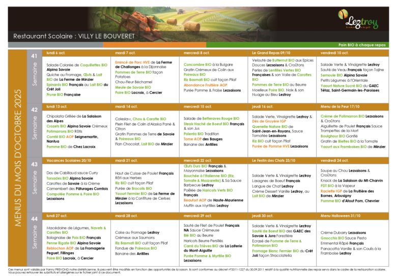 Les repas seront livrés tous les jours par l’entreprise « Leztroy » depuis le 1er septembre 2022.